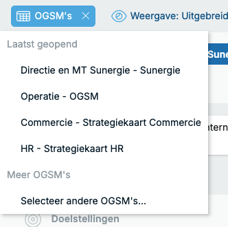 - Klik op de knop om de laatste geselecteerde OGSM's te zien. Zo kun je snel wisselen tussen OGSM's.
